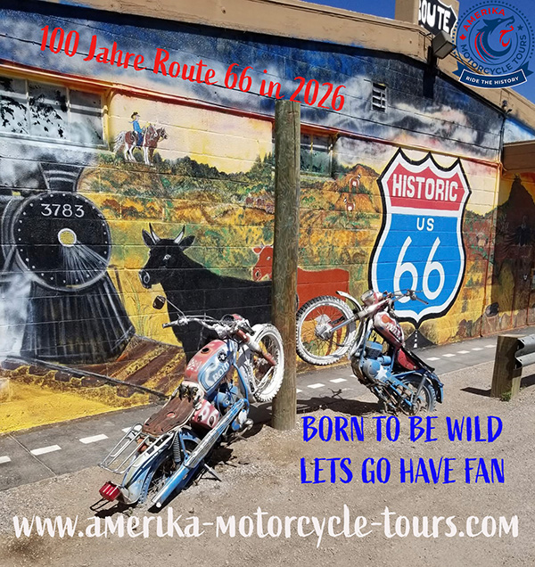 In 2026 Feiern wir 100 Jahre Route 66. Dem Horizont entgegen, die grenzenlose Freiheit auf 2 Rädern genießen.